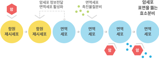 촉진함으로써 암세포의 사멸 프로세스를 활성화하는 자가면역 강화치료입니다.
